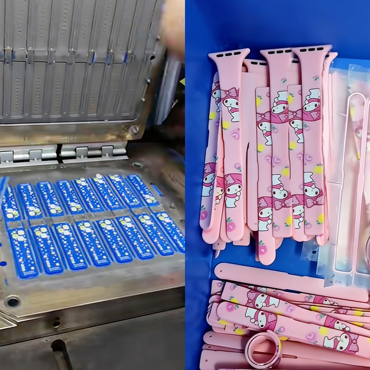 Multi-color silicone integrated molding, commonly known as silicone film internal transfer, is to print the pattern on the transfer film first, which can be machine-printed or silk-screened, and then position the patterned transfer film in the mold and mold it together with the silicone. Finally, tear off the film. .