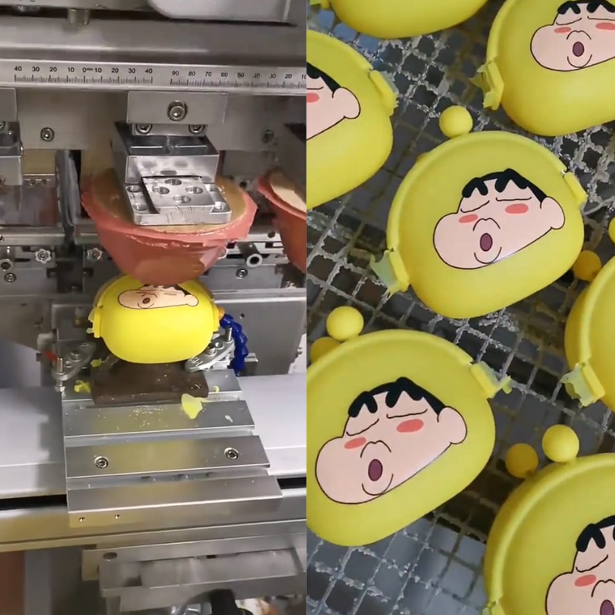 Silicone ink has good tensile color fastness, and can print products with curved surfaces. The advantage of pad printing is that the printing speed is fast, and it can do color registration of several colors of the logo at the same time. The disadvantage is that compared with silk screen printing, the printing area is small, the ink is slightly thinner, and the color saturation of the pattern is less.