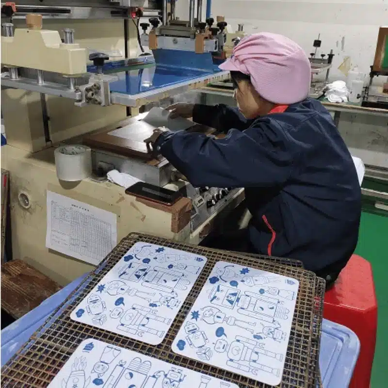 • Silk Screen Printing: Suitable only for simple patterns and solid colors. This method provides durable printing that does not easily fade over time. It is dishwasher-safe and food-grade compliant. The printing jig costs around USD 100 per color.