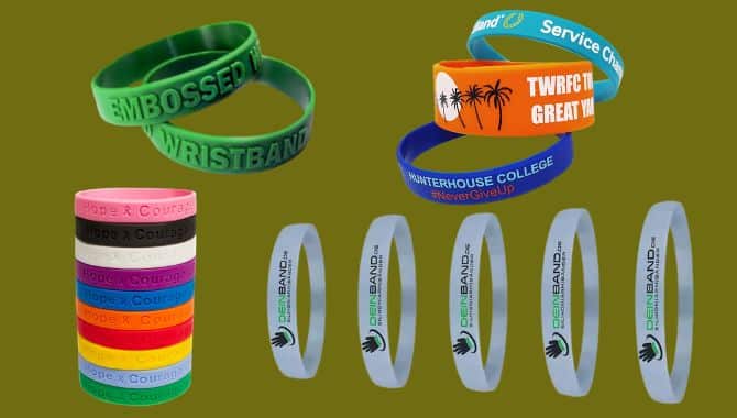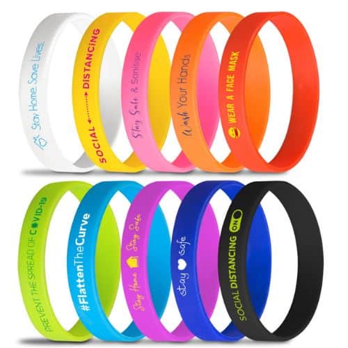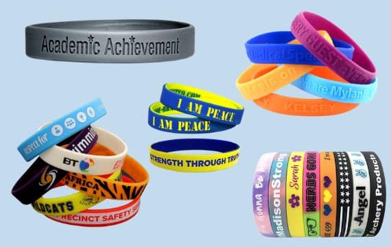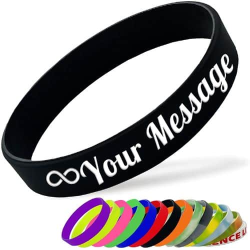 Silicone wristbands are customizable and very affordable. You can dictate your art, message, brand, or logo onto the wristbands. Custom size and color are also available.