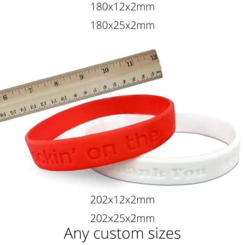 Our silicone wristbands or bracelets are made with 100% silicone rubber. It is latex & toxin-free, comfortable to wear, eco-friendly, and easy to take on and off.