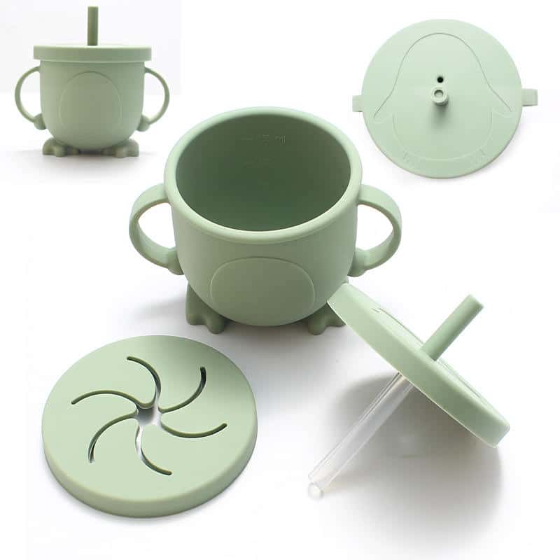 Our Custom Silicone Baby Cups are designed for baby product brands and wholesalers seeking safe, durable, and functional feeding solutions. Made from BPA-free, LFGB- and FDA-certified food-grade silicone, these cups feature dual handles for easy grip and come with interchangeable lids — one for straw drinking and one for snack storage. Soft, flexible, and heat-resistant, they help babies transition from bottles to independent drinking safely. OEM/ODM customization includes logo printing, Pantone color matching, and private-label packaging — ideal for retail baby sets or promotional use.