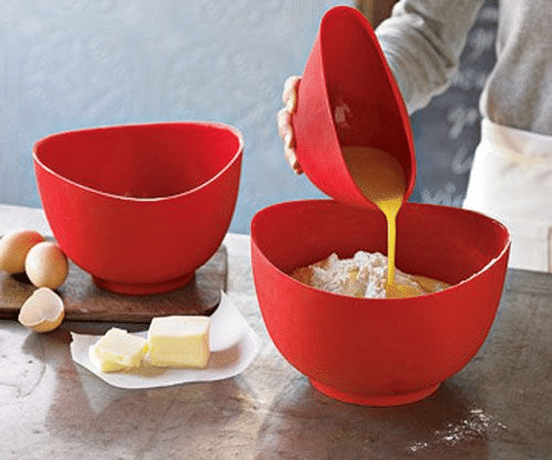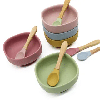 Silicone bowls are replacing plastic because it is not leached by chemicals, plastic bowls are leached BPA or phthalates under heat, which may influence child development, and silicone bowls are non-reactive and stable. Silicone may be lightweight; easily transportable, unlike ceramic, which breaks easily and can have lead in the glaze, and is flexible, thus unbreakable. Stainless steel is strong and transfers heat rapidly creating the risk of burns and does not stick like silicone allowing easy mixing or serving.